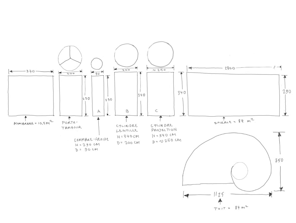 - cylindre projection c = diamètre à déterminer (environ 250cm) et hauteur 340cm